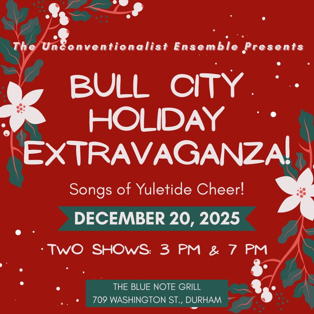 Finally, I'll once again be joining the Bull City Holiday Extravaganza for a few songs on December 20th. We have two shows - 3pm and 7pm. They will sell out - grab tickets early!