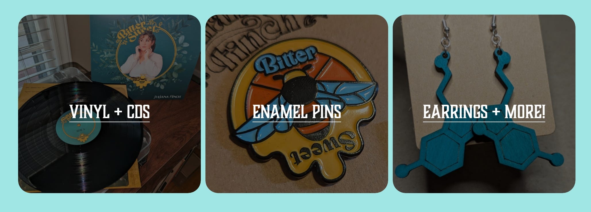 The new store includes autographed vinyl, prints, and earrings, as well as my new tea towels: